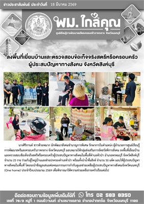 ลงพื้นที่เยี่ยมบ้านและตรวจสอบข้อเท็จจริงสตรีหรือครอบครัวผู้ประสบปัญหาทางสังคมในพื้นที่ตำบลหัวป่า อำเภอพรหมบุรี จังหวัดสิงห์บุรี