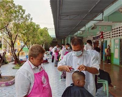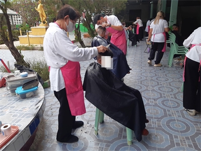 ออกหน่วยบริการเคลื่อนที่ตัดผมให้แก่นักเรียนชายโรงเรียนไทยรัฐวิทยา 95