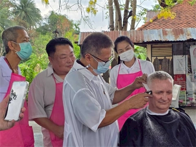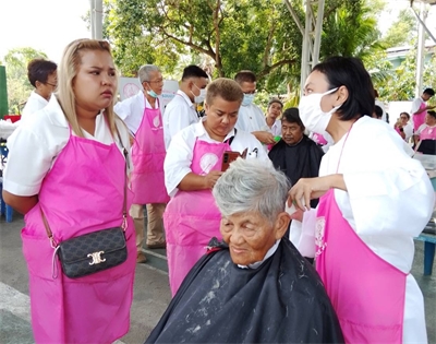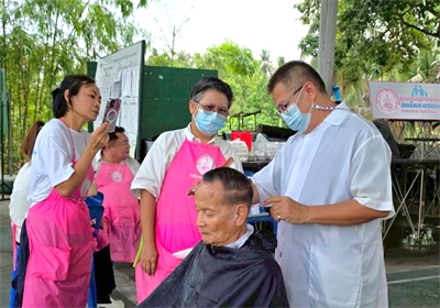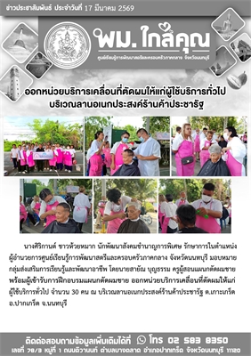 ออกหน่วยบริการเคลื่อนที่ตัดผมให้แก่ผู้ใช้บริการทั่วไป บริเวณลานอเนกประสงค์ร้านค้าประชารัฐ