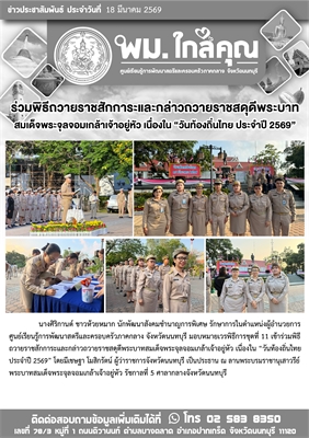 วันที่ 18 มีนาคม 2569 นางศิริกานต์ ชาวห้วยหมาก นักพัฒนาสังคมชำนาญการพิเศษ รักษาการในตำแหน่งผู้อำนวยการศูนย์เรียนรู้การพัฒนาสตรีและครอบครัวภาคกลาง จังหวัดนนทบุรี มอบหมายเวรพิธีการชุดที่ 11 เข้าร่วมพิธีถวายราชสักการะและกล่าวถวายราชสดุดีพระบาทสมเด็จพระจุลจอมเกล้าเจ้าอยู่หัว เนื่องใน วันท้องถิ่นไทย ประจำปี 2569