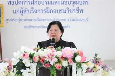 ทบุรี จัดพิธีปิดและมอบวุฒิบัตรแก่ผู้สำเร็จการฝึกอบรมทักษะวิชาชีพ รุ่นที่ 2 ประจำปีงบประมาณ 2569 หลักสูตรเสริมสวยสตรี 60 ชั่วโมง